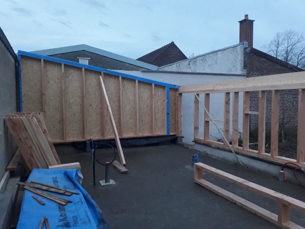 L’ossature bois s’élève petit à petit, on voit apparaitre l’oratoire de l’infirmerie :