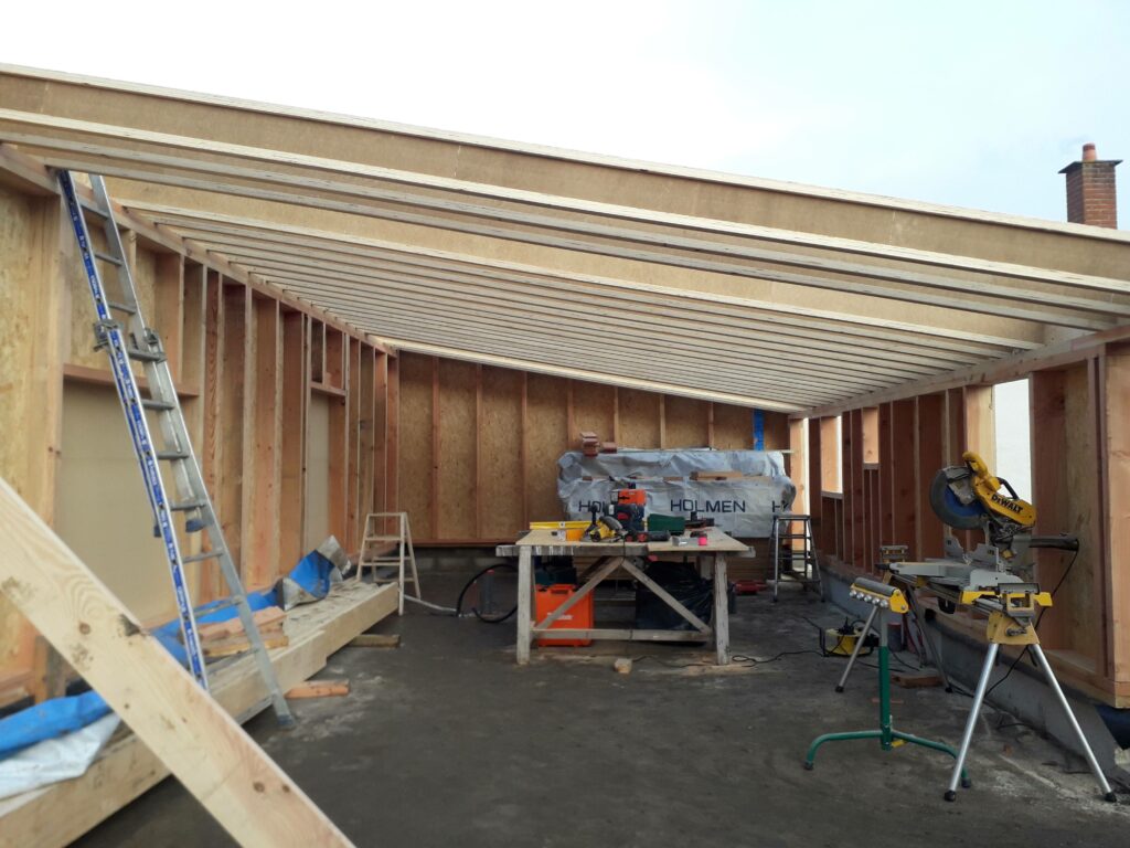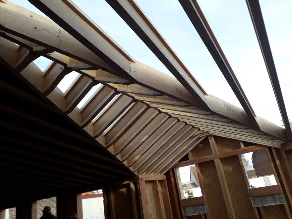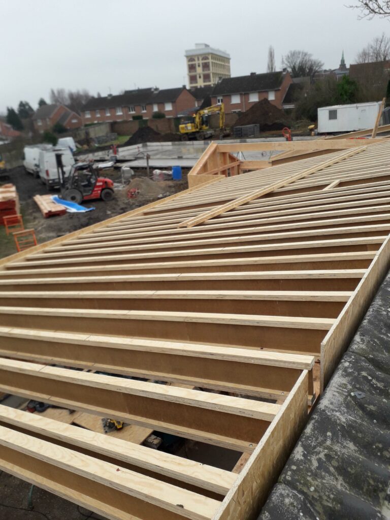 début de la pose de la charpente de l’infirmerie